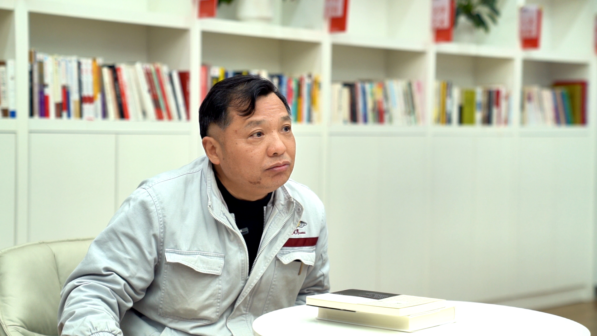 三联新材料公司党委书记、董事长邓永接受采访。